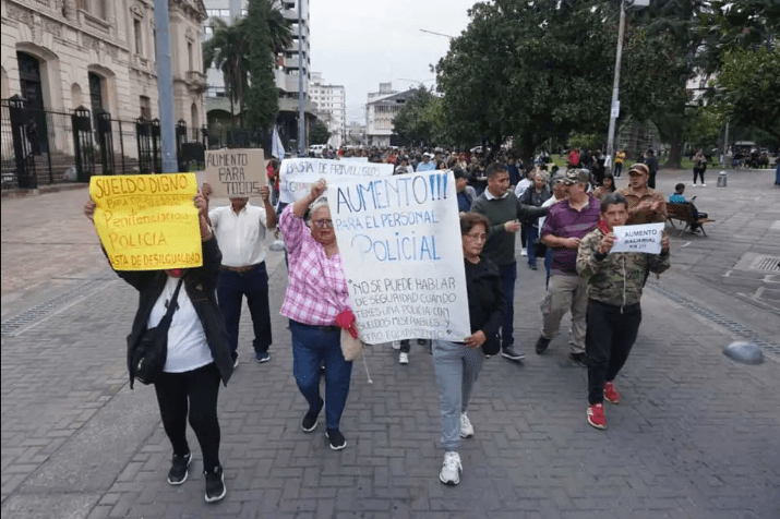 Familiares de policías y efectivos retirados protestaron en San Salvador de Jujuy para exigir una recomposición salarial. El gobierno provincial anunció una mesa de negociación para analizar una nueva estructura de ingresos del sector.